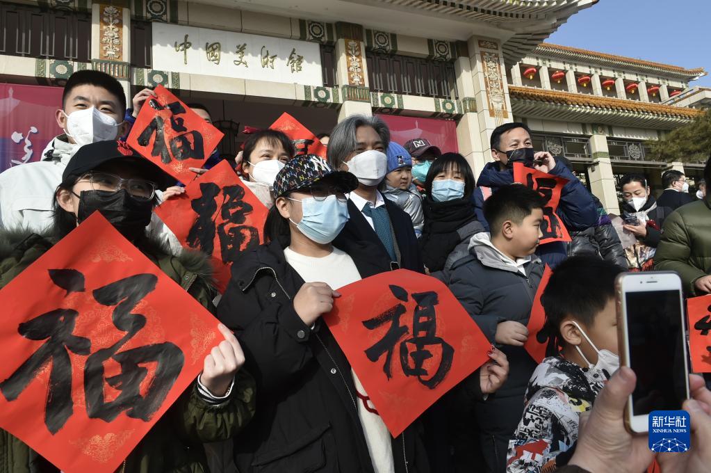 當日是大年初一,中國美術館在前廣場舉行送“福”賀新春活動,邀請書法家現場為觀眾書寫并贈送“福”字,共賀新春佳節。
