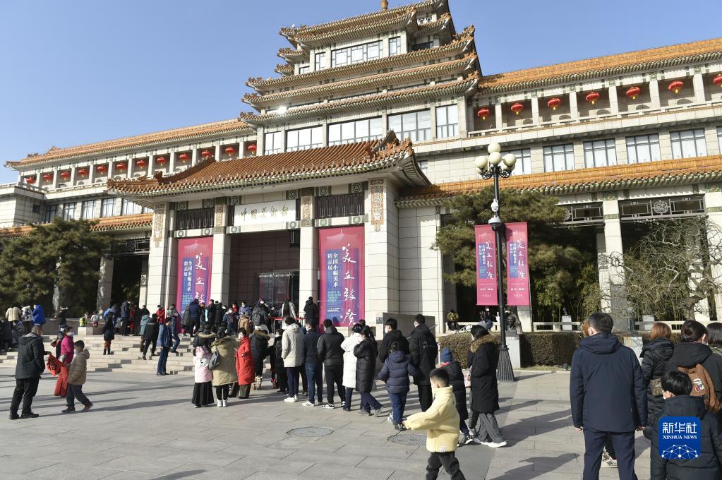 1月22日,觀眾在中國美術館排隊領取書法家現(xiàn)場書寫的“福”字。