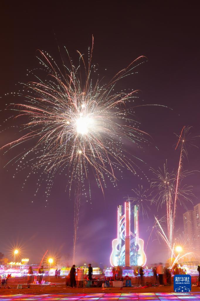 辭舊迎新之際,在允許燃放煙花爆竹的區(qū)域,人們點燃喜慶的煙花,迎接新春佳節(jié)。