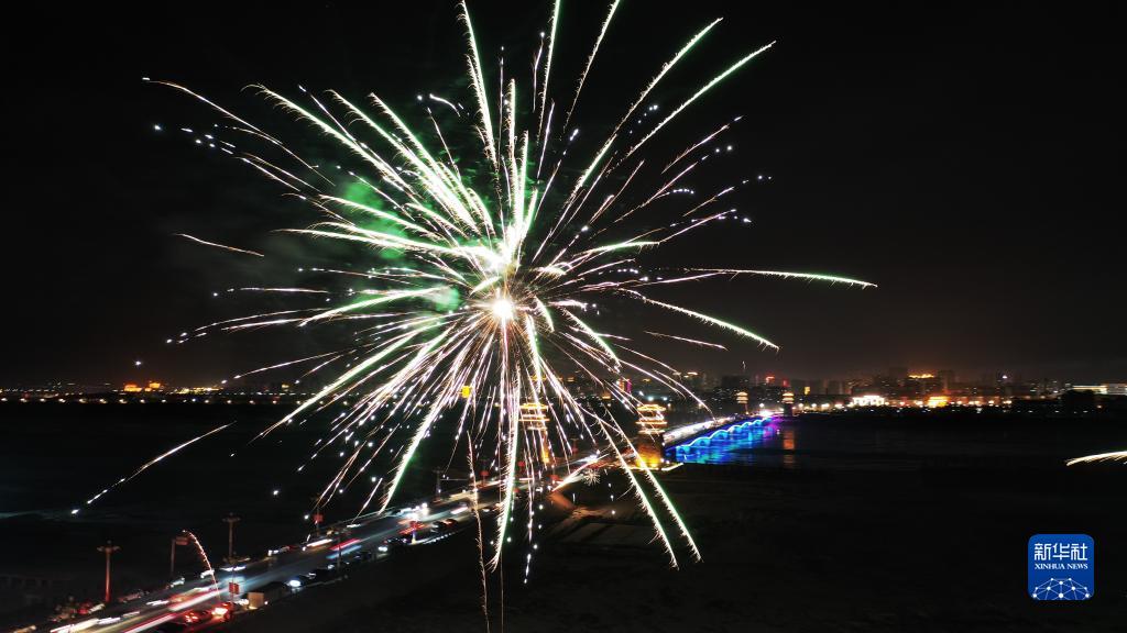 辭舊迎新之際,在允許燃放煙花爆竹的區域,人們點燃喜慶的煙花,迎接新春佳節。