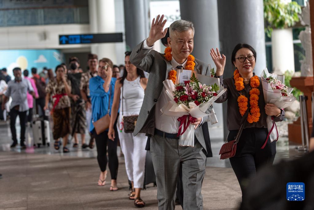 當天,旅游勝地巴厘島迎來2023年首架中國游客包機。乘客從中國深圳飛抵巴厘島后,在機場受到熱烈歡迎。