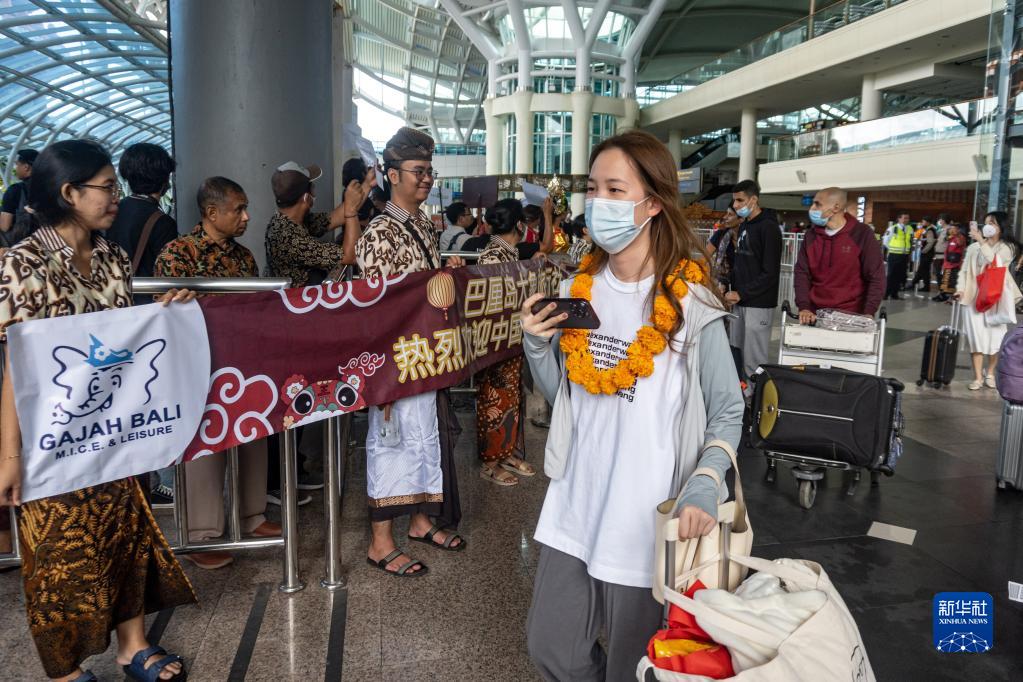 當天,旅游勝地巴厘島迎來2023年首架中國游客包機。乘客從中國深圳飛抵巴厘島后,在機場受到熱烈歡迎。