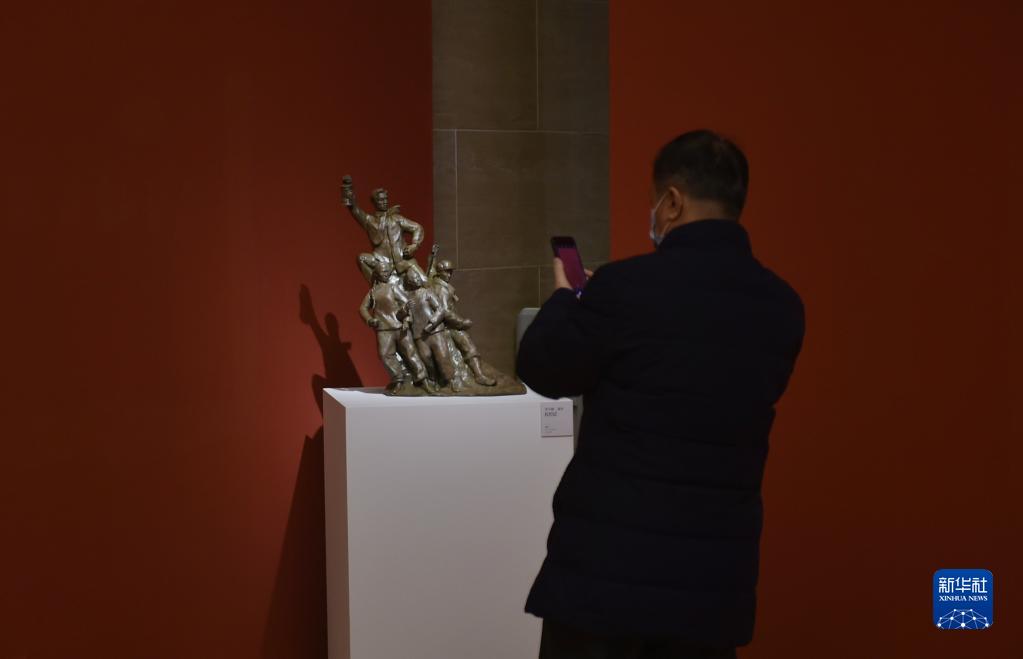 1月22日,參觀者在中國美術館拍攝“美在致廣——全國小幅美術精品展”中的展出作品《紅燈記》。