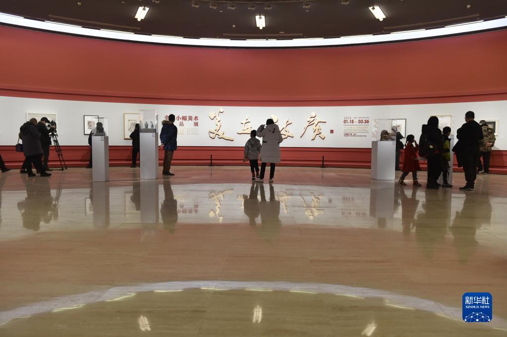 1月22日,觀眾在中國美術館參觀“美在致廣——全國小幅美術精品展”。
