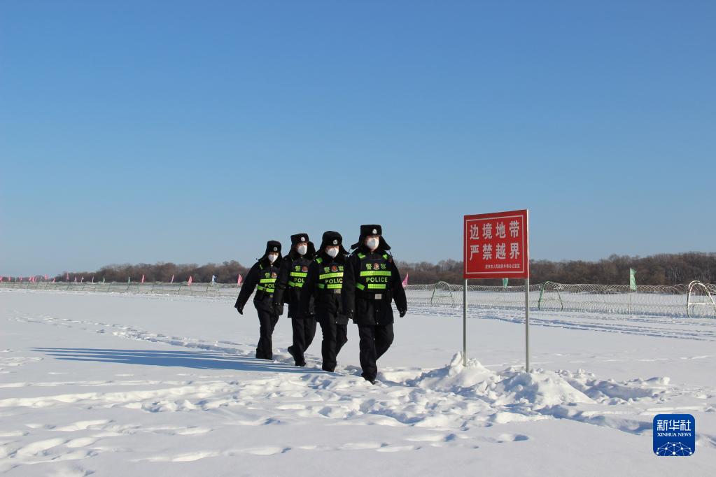 1月22日,雞西邊境管理支隊(duì)虎頭邊境派出所的移民管理警察在邊境巡邏。