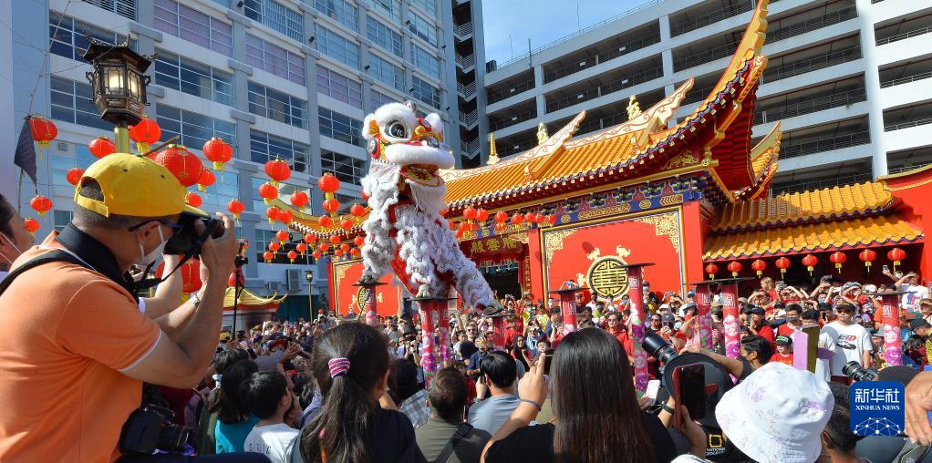 當日,文萊華人舉行舞龍舞獅和“開門迎賓”活動,慶祝兔年新春佳節。