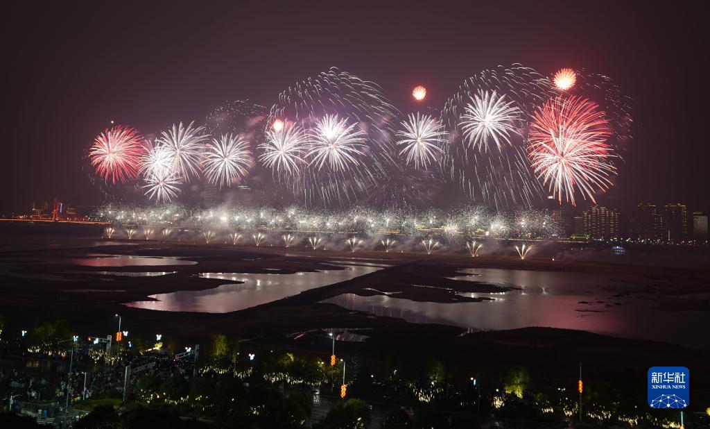 1月22日大年初一晚,2023年南昌市迎春煙花晚會在江西省南昌市贛江老官洲上演。絢爛繽紛的煙花在夜空中爭奇斗艷,為市民及游客送上新春祝福。