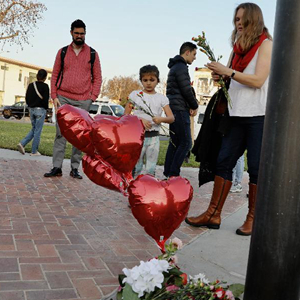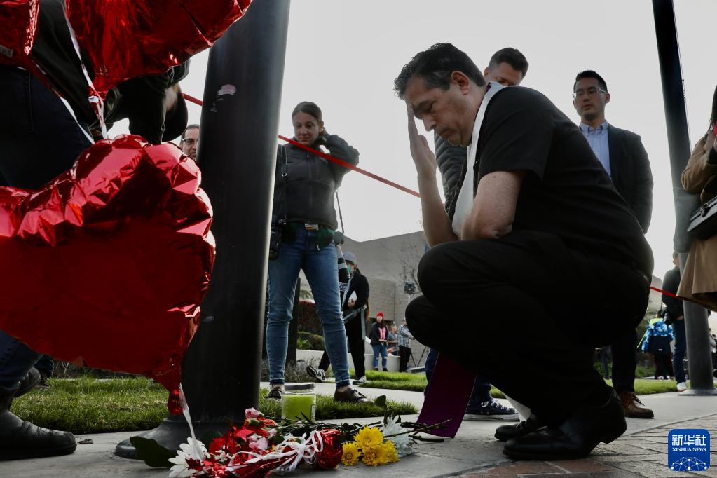 1月22日,人們在美國加利福尼亞州蒙特雷帕克市政廳前對槍擊案遇難者表示哀悼。