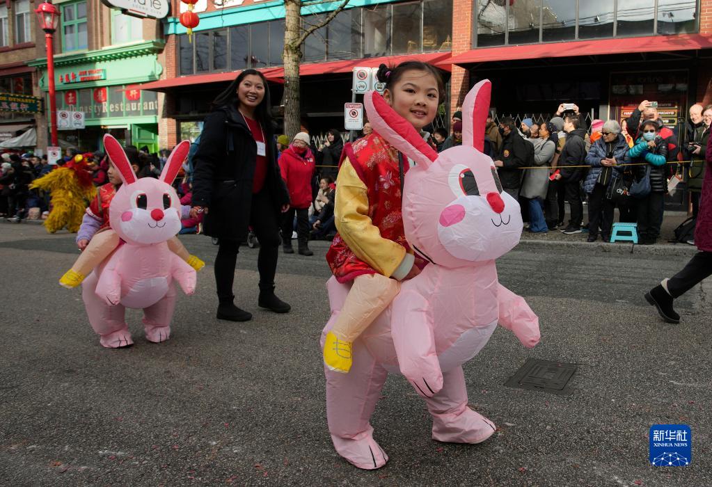 當(dāng)日,加拿大溫哥華唐人街舉行第48屆春節(jié)大巡游,吸引數(shù)萬(wàn)民眾到場(chǎng)觀看,共同慶祝兔年新春佳節(jié)。