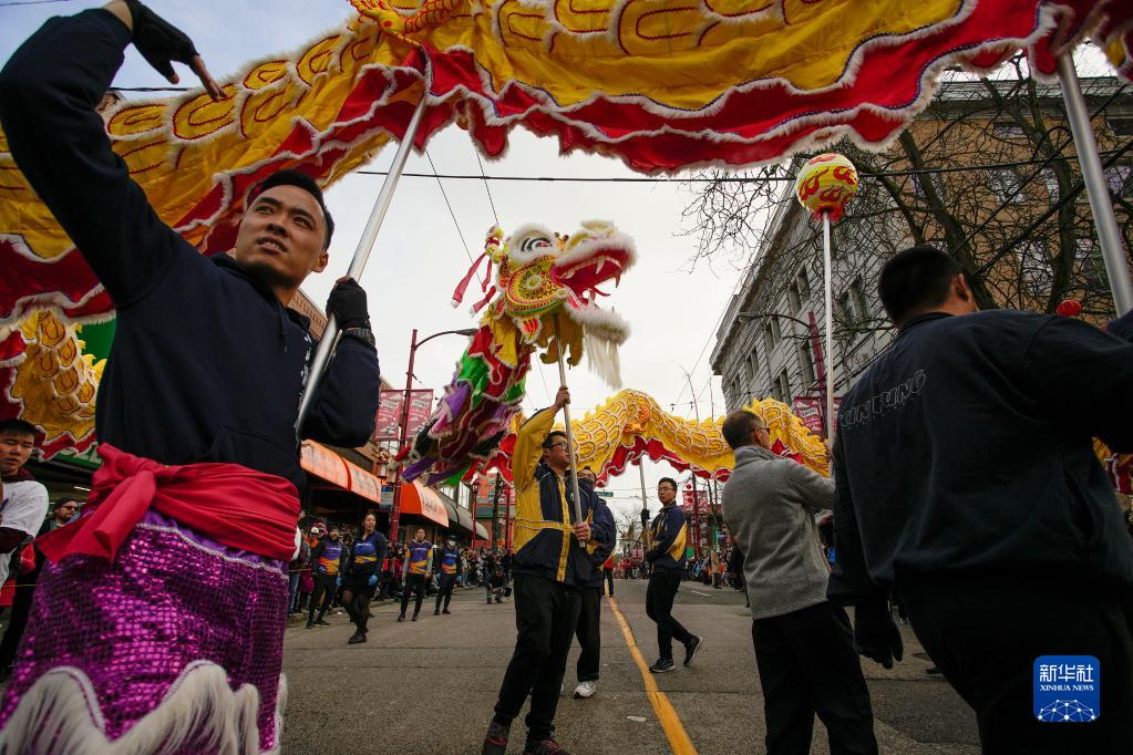 當(dāng)日,加拿大溫哥華唐人街舉行第48屆春節(jié)大巡游,吸引數(shù)萬民眾到場(chǎng)觀看,共同慶祝兔年新春佳節(jié)。