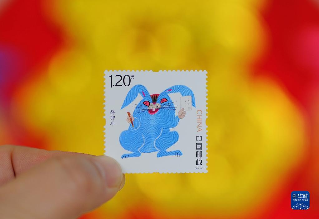 山東省滕州市集郵愛好者展示兔年生肖郵票(1月21日攝)。