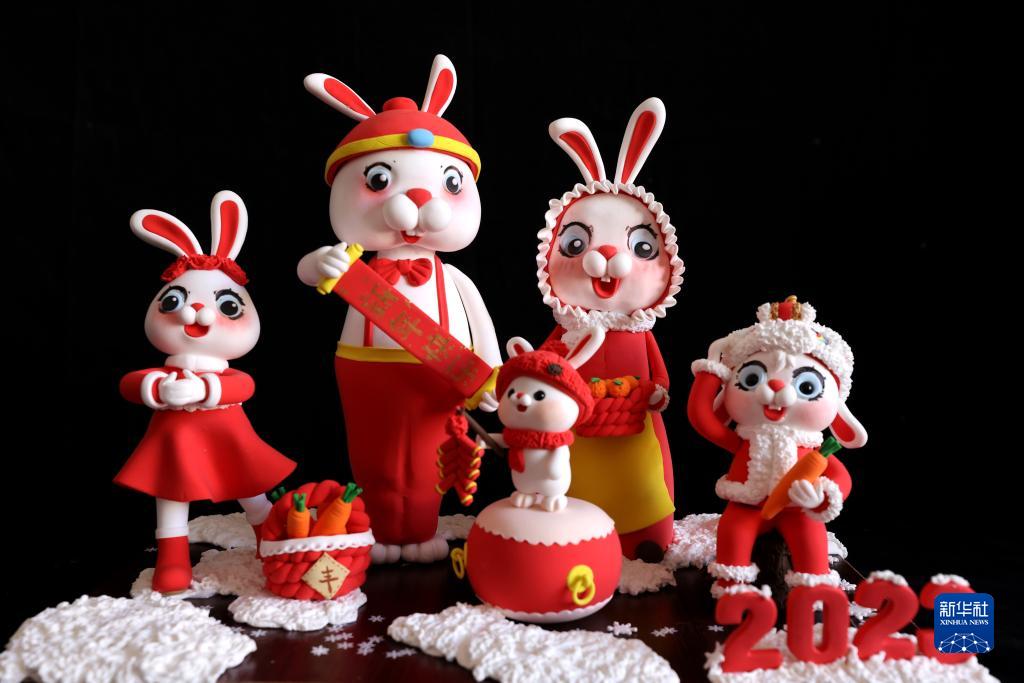 在山東省棗莊市光明路街道利民社區拍攝的民間藝人創作的面塑作品《新春祝?!罚?月20日攝)。