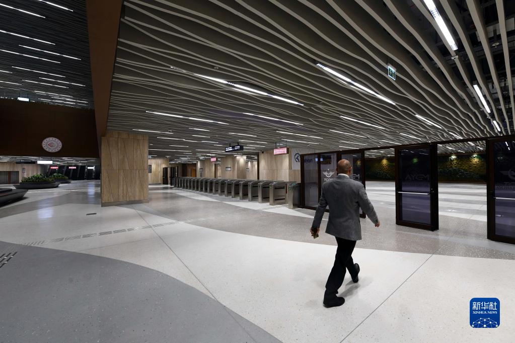 這是1月22日拍攝的土耳其伊斯坦布爾新機(jī)場(chǎng)線一車站內(nèi)景。