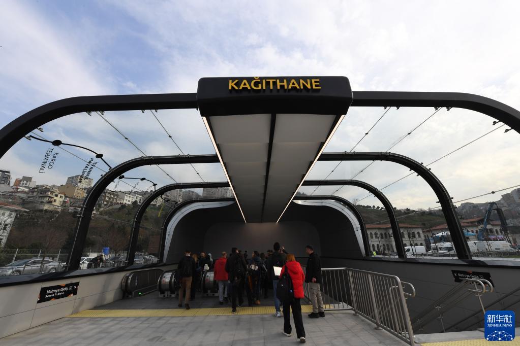 1月22日,在土耳其伊斯坦布爾,人們步入伊斯坦布爾新機場線卡厄特哈內車站。