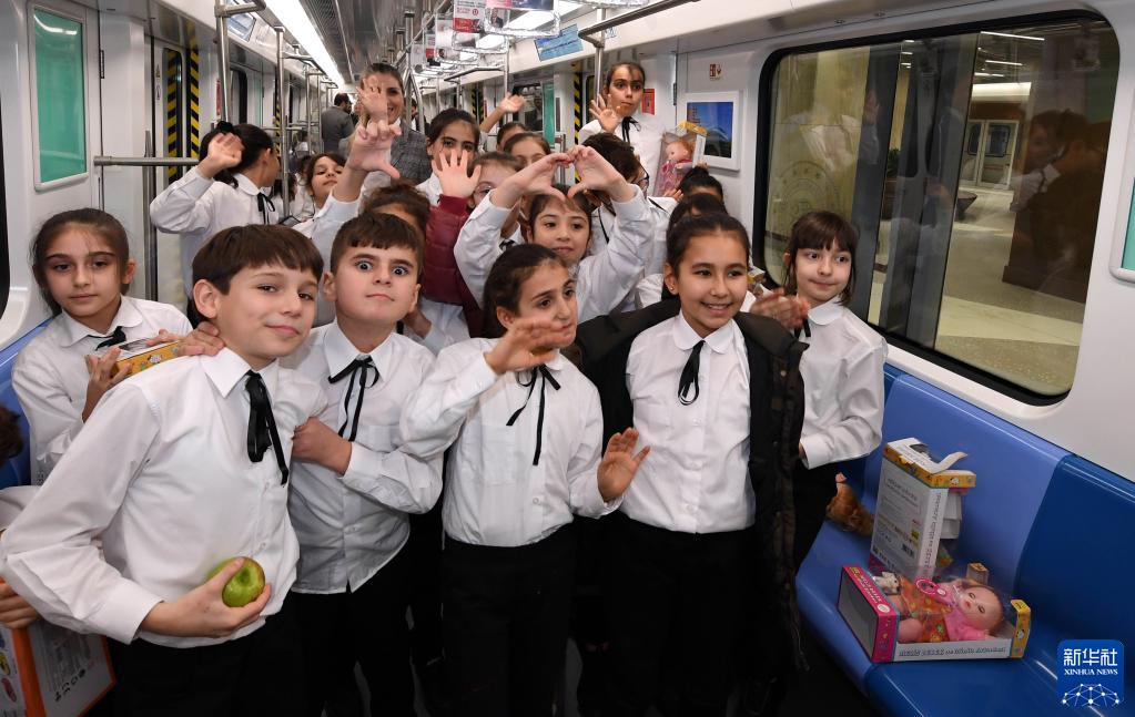 1月22日,學(xué)生登上伊斯坦布爾新機場線地鐵列車體驗。