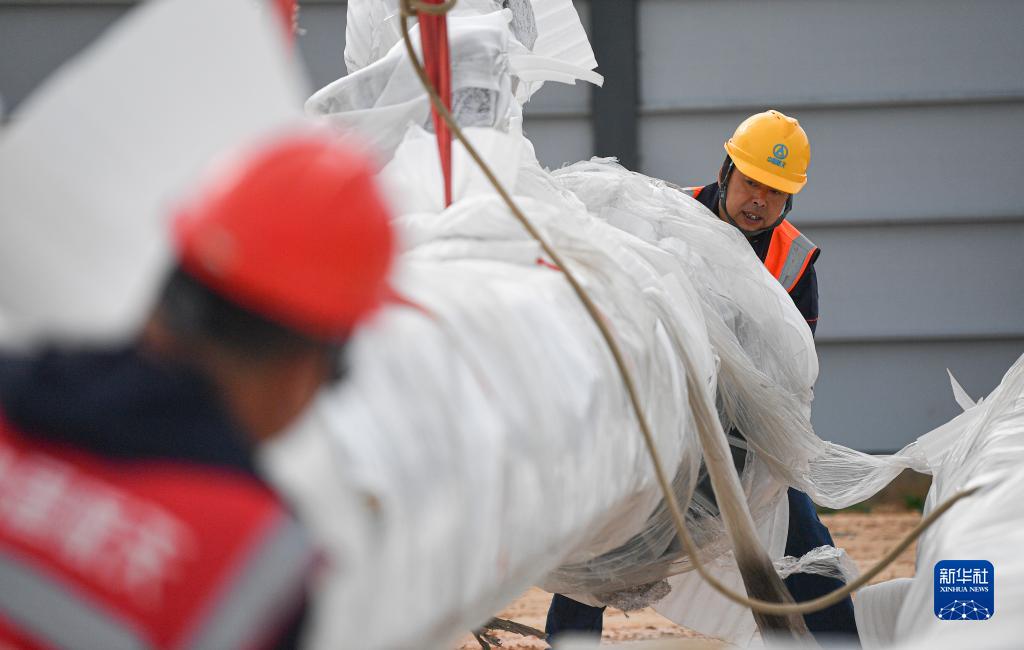 1月23日,工人在位于海南省文昌市的海南商業航天發射場1號工位轉運設備構件。