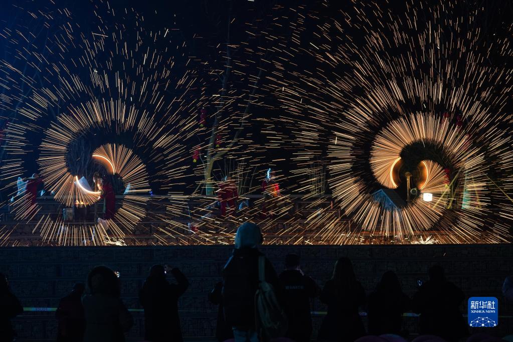 春節期間,江蘇省淮安市盱眙縣在第一山歷史文化街區舉辦兔燈展、“老街味道”傳統小吃嘉年華、舞龍、打鐵花等豐富多彩的文旅活動,讓市民和游客在濃濃的年味中歡度佳節。