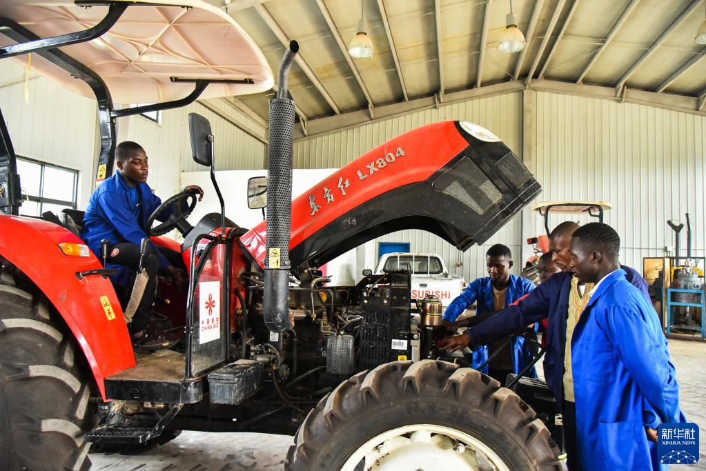 1月12日,在喀麥隆亞巴西,學生在農(nóng)業(yè)職業(yè)技術中學上拖拉機實踐課。