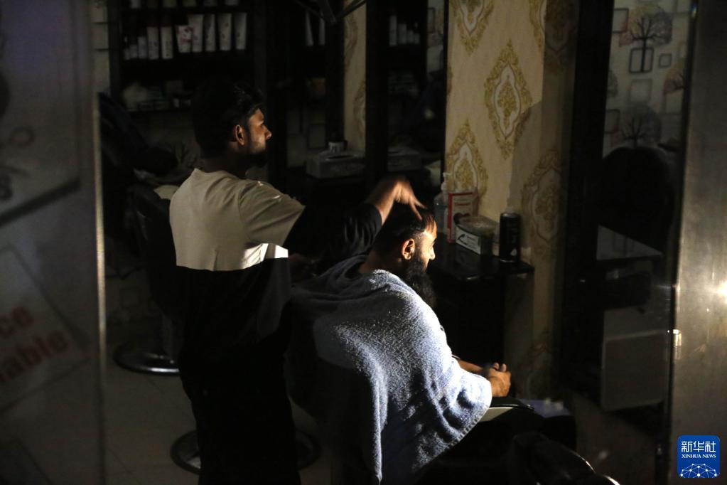 1月23日,在巴基斯坦伊斯蘭堡,一間理發(fā)店在大規(guī)模停電期間營業(yè)。