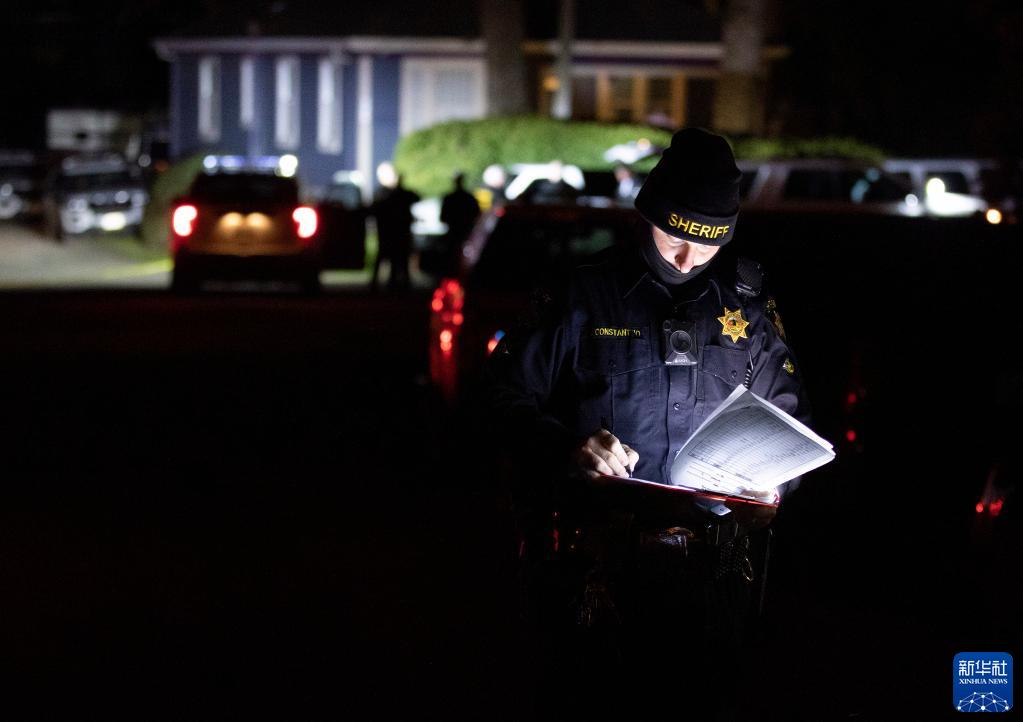 1月23日,執(zhí)法人員在美國加利福尼亞州舊金山灣區(qū)半月灣市槍擊事件現(xiàn)場調(diào)查。