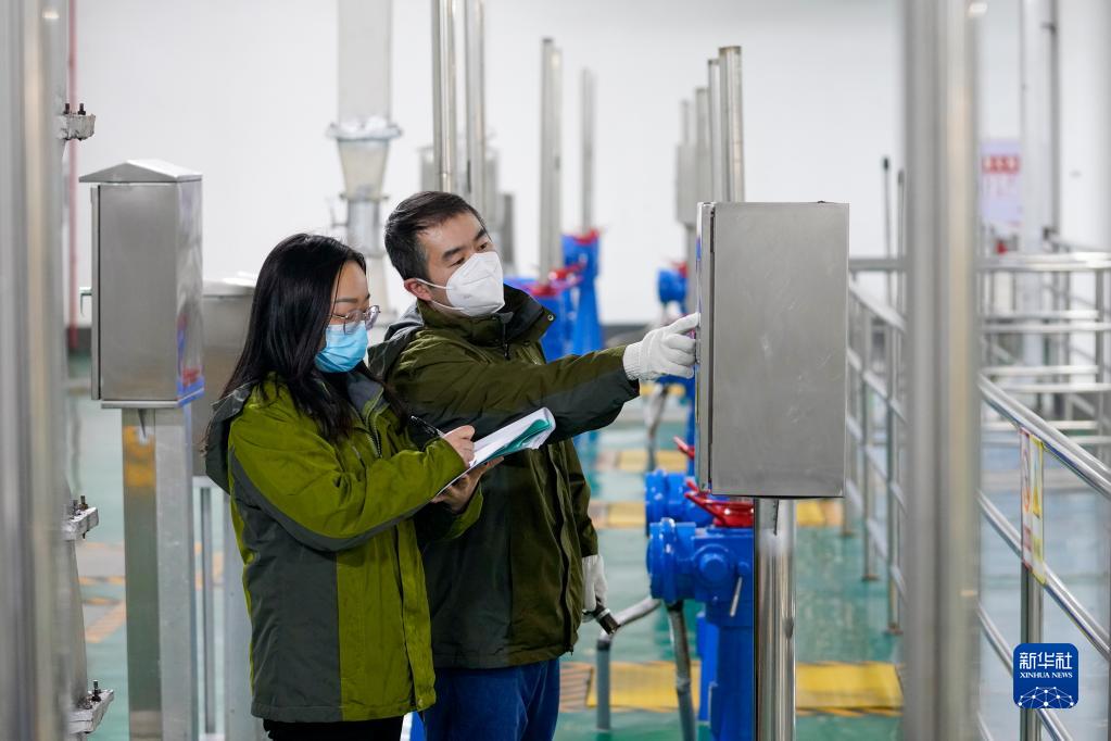 1月24日,重慶市悅來污水處理廠的值班人員對污水處理設備和運行情況進行日常巡查。