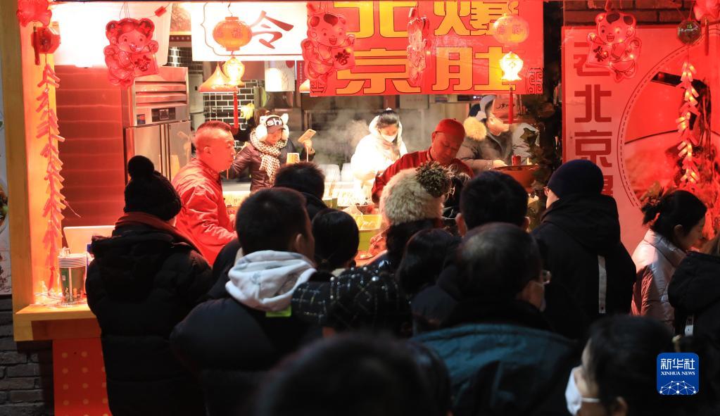 1月23日,市民在沈陽新春皇寺廟會上品嘗美食。