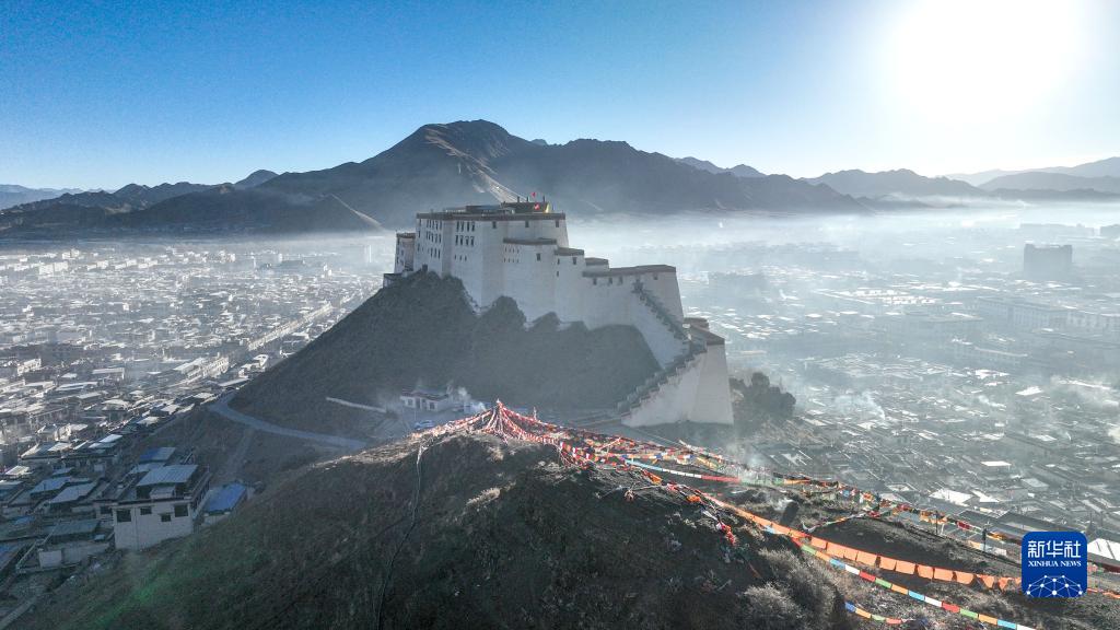 西藏日喀則地方藏歷農家新年期間,藏族群眾沿襲傳統,一大早就在山頂和自家屋頂上豎起新經幡,祈愿新年風調雨順、國泰民安。