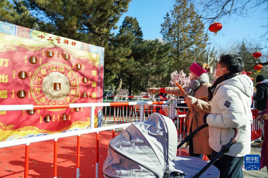 1月24日,張珍妮和丈夫在北京八大處公園舉辦的第十屆八大處新春文化廟會(huì)上打金錢眼。這項(xiàng)活動(dòng)象征著“吉祥如意”。