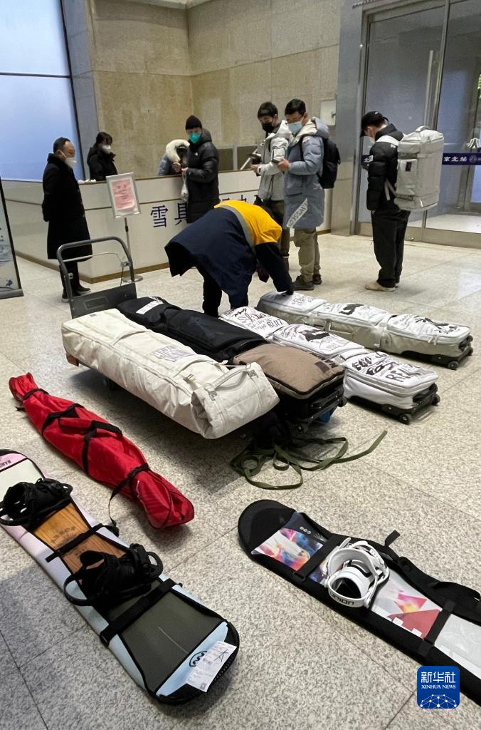 1月24日,滑雪愛好者在北京北站托運(yùn)滑雪用具,準(zhǔn)備乘坐“滑雪專列”去崇禮滑雪場滑雪休閑。