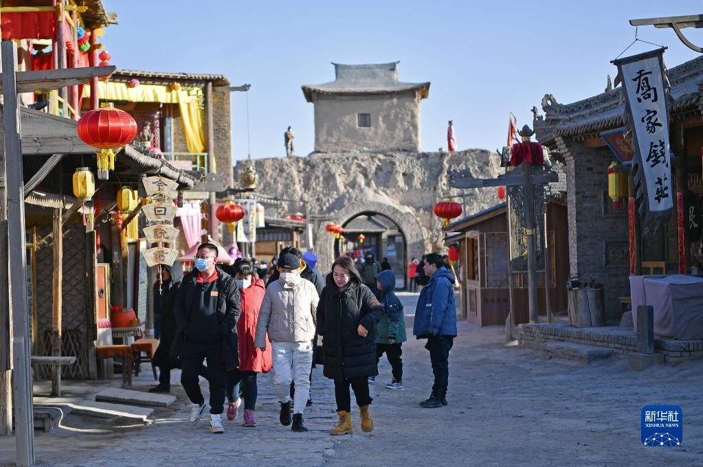 1月24日,游客在寧夏鎮北堡西部影城參觀游玩。