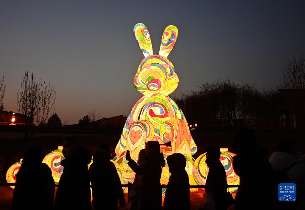 1月24日,游人在西安大唐芙蓉園內(nèi)觀賞花燈。