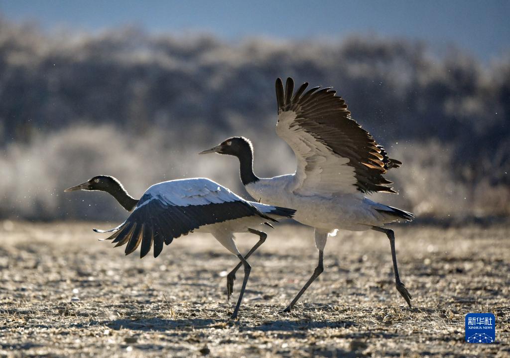 在西藏雅魯藏布江中游河谷黑頸鶴國家級自然保護(hù)區(qū)日喀則市拉孜縣越冬的黑頸鶴(1月23日攝)。