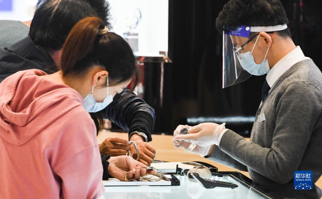 1月25日,游客在中免集團(tuán)海口日月廣場免稅店選購免稅商品。