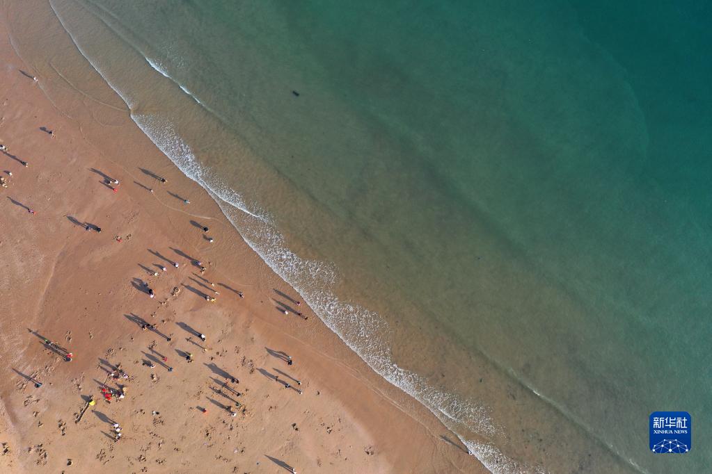 1月25日,游客在廣西防城港市的海灘游玩(無人機照片)。