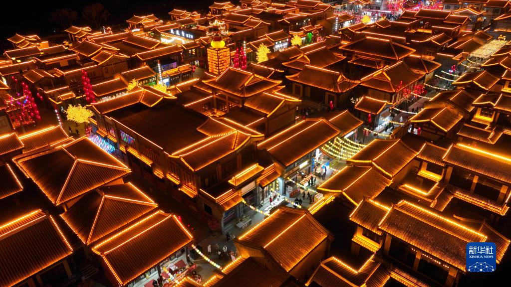1月25日,游客在山東省臨沂市郯城縣郯國(guó)古城觀賞美景(無人機(jī)照片)。