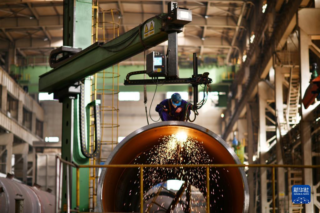 1月25日,工人在哈電集團哈爾濱鍋爐廠有限責任公司生產車間內作業。