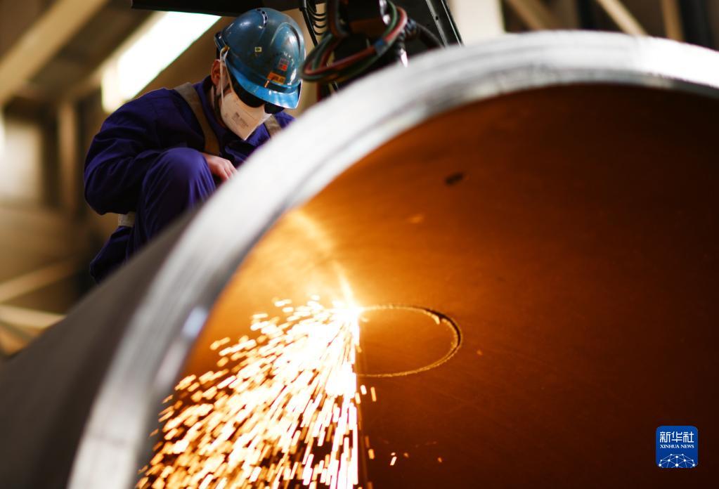 1月25日,工人在哈電集團哈爾濱鍋爐廠有限責任公司生產車間內作業(yè)。