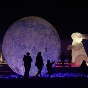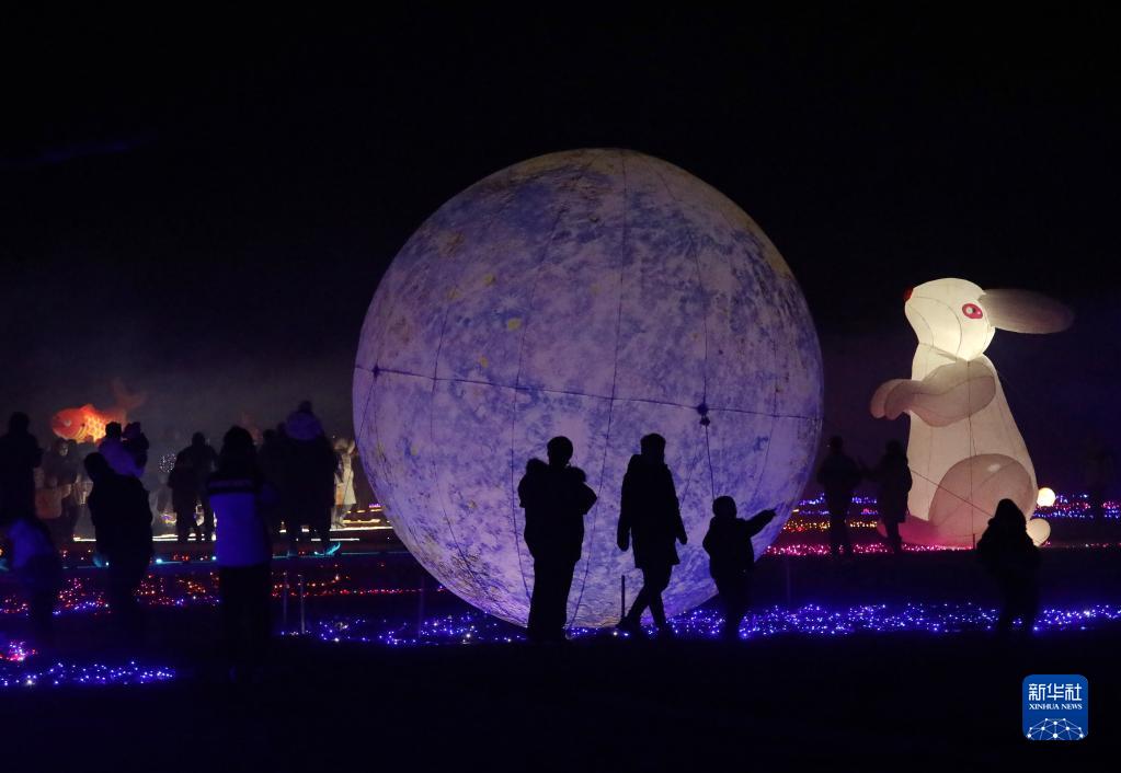 1月25日,游客在河北省石家莊晉州市周家莊鄉(xiāng)第九生產(chǎn)隊(duì)欣賞燈光秀。