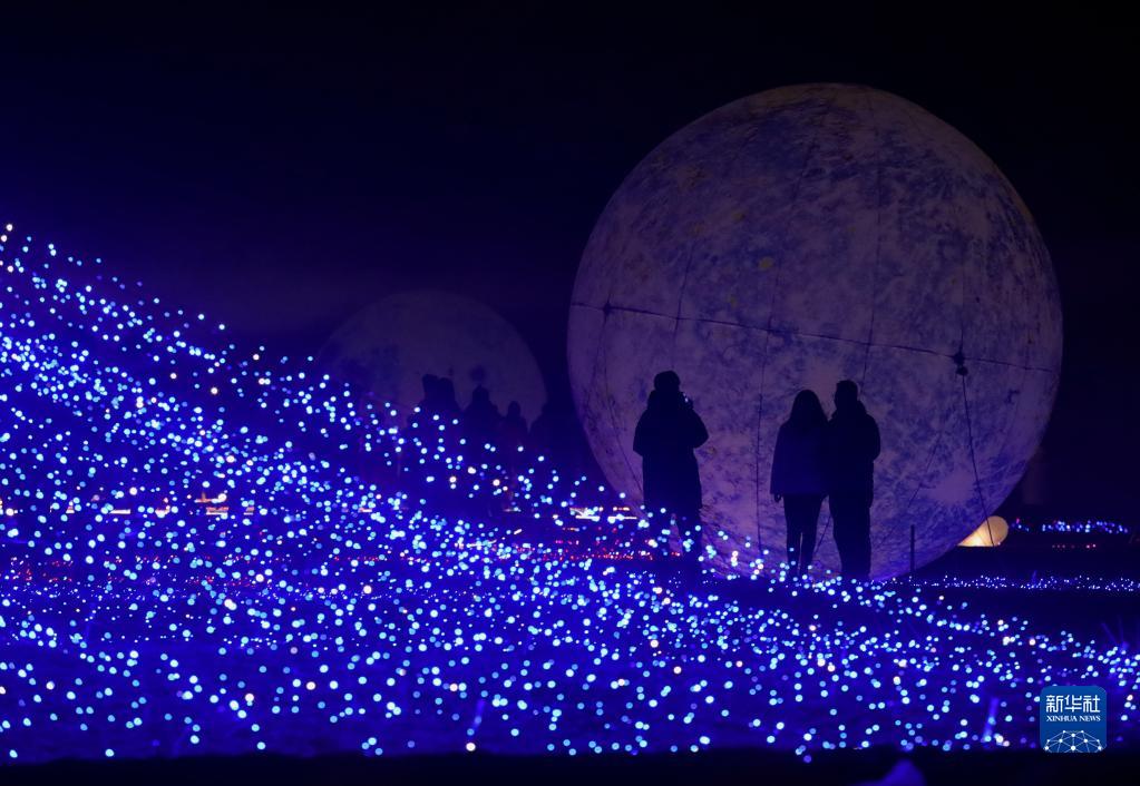 1月25日,游客在河北省石家莊晉州市周家莊鄉第九生產隊欣賞燈光秀。