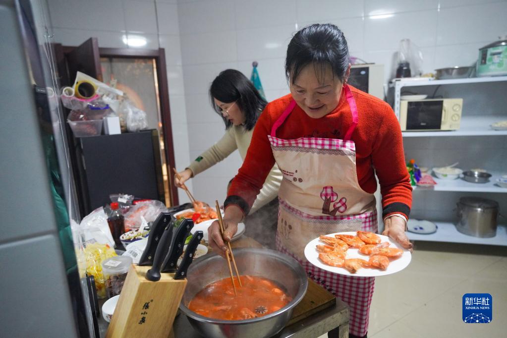張紅霞(右)在家中的廚房里為雪友準(zhǔn)備年夜飯(1月21日攝)。