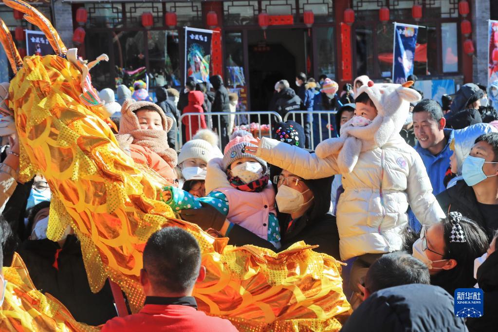 春節假期,河北省張家口市橋西區大境門廟會熱鬧舉行,民間社火、舞龍、戲曲表演等節目吸引了眾多游人。