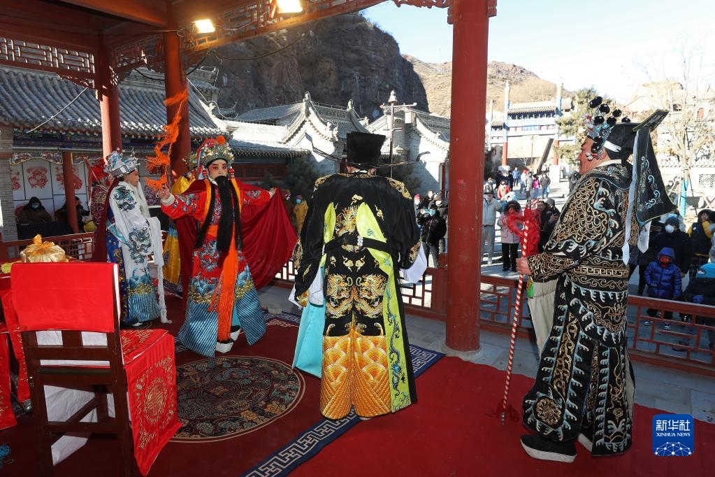 1月26日,游人在大境門廟會(huì)上欣賞傳統(tǒng)戲曲表演。