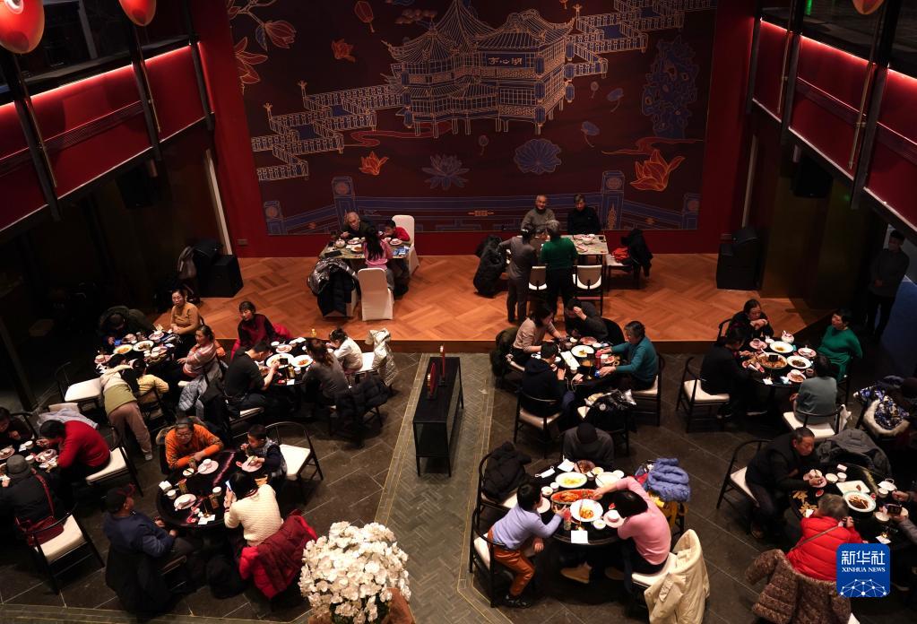 1月26日,人們在上海老飯店(豫園店)內用餐。