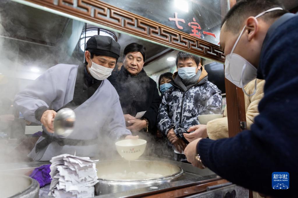1月26日,游客在上海市閔行區(qū)七寶老街購買湯圓。
