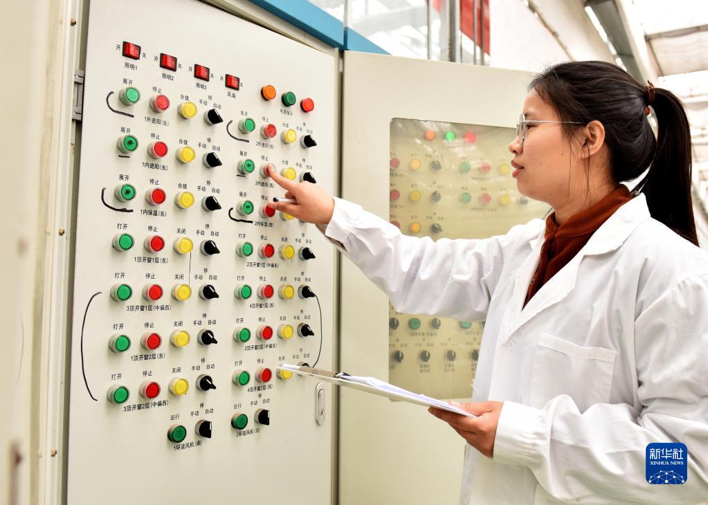 1月26日,武瑞娜在現(xiàn)代化蔬菜種植大棚操作農(nóng)業(yè)設(shè)施。