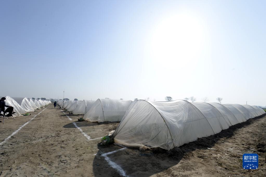 這是1月16日在巴基斯坦旁遮普省木爾坦拍攝的中巴辣椒訂單種植項目辣椒育苗大棚。