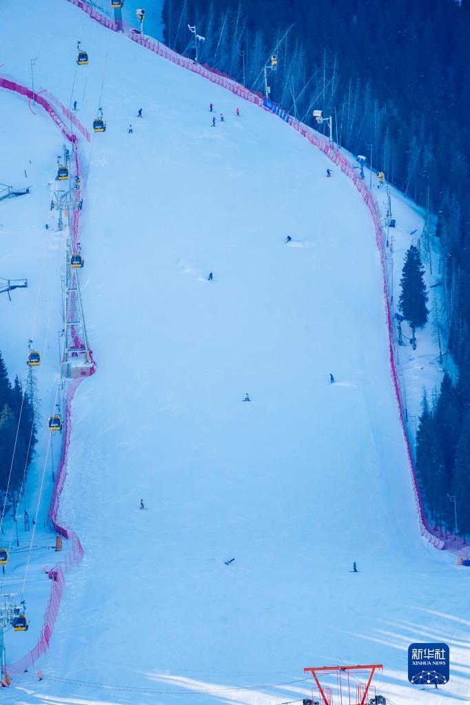 滑雪愛好者在絲綢之路國際滑雪場一處雪道上滑雪(1月25日攝)。