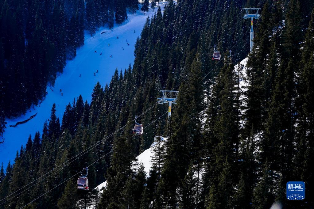 滑雪愛好者在絲綢之路國際滑雪場歡樂谷雪道上滑雪(1月25日攝)。