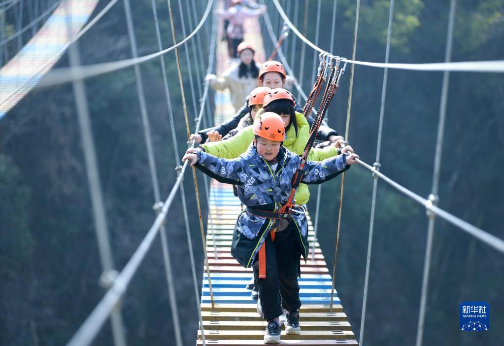 春節假期,人們前往地處鄂西山區的宣恩縣鑼圈巖地質公園,體驗天坑上空行走、深入洞穴探險等,學習地質知識,挑戰自我,樂享戶外休閑的樂趣。