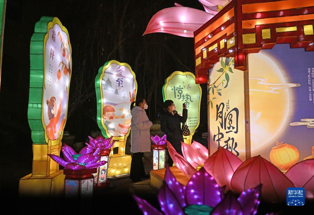春節期間,天津中華石園景區舉辦的新春民俗燈會吸引了眾多游客。夜幕降臨后,融合兔子、二十四節氣等元素的各式彩燈結合現代光影變得惟妙惟肖、活靈活現。市民及游客在此賞燈游玩、“打卡”拍照,感受節日氛圍。